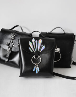– 3 pockets (one with metal zipper closure inside and 2 small pockets on the back and front with YKK zippers).